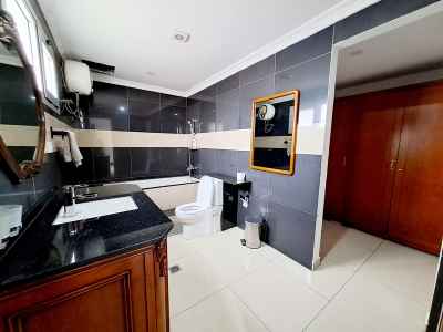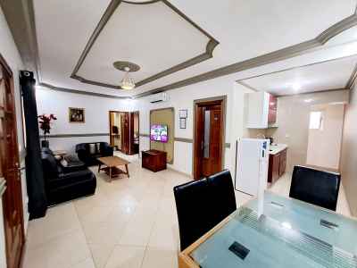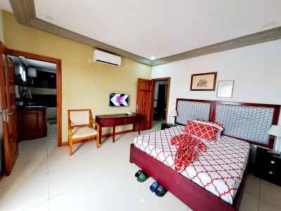 O nosso APARTAMENTO T2 VIP, possui uma sala enorme com uma cozinha devidamente apetrechada que favorece a estadia de Famílias, bem como preparações de Noivos. Cada quarto possui: televisão LCD por satélite, ar condicionados, roupeiro. O quarto principal tem uma varanda, wc com closer.